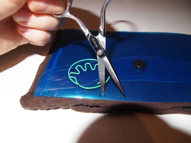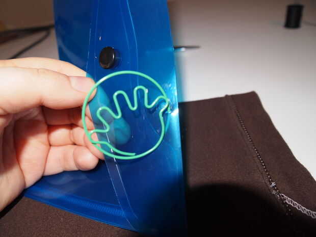 Usando las tijeras de coser o aguja de gran diámetro, perfore el borde superior o tapa de la bolsa de plástico, para que cuando se rosca a medio camino a través, el clip será vertical y en una posición de clip a algo fuera de la bolsa de plástico. (véase abajo)