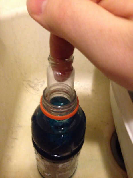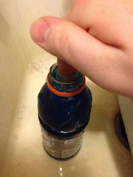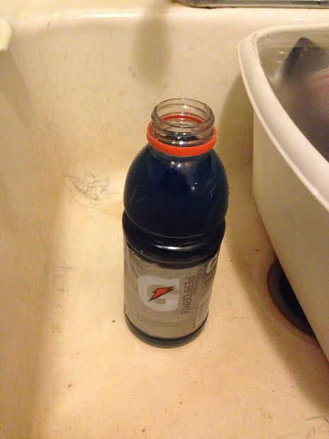 Para nuestro compartimento oculto tiene una botella de gatorade, un colorante oscuro y un tubo que es cerca de 3 pulgadas de largo y casi tan ancha como la parte superior de la botella. Luego sacó de la gatorade para poner el tubo sin él sobre el rel