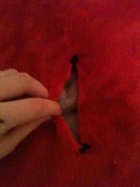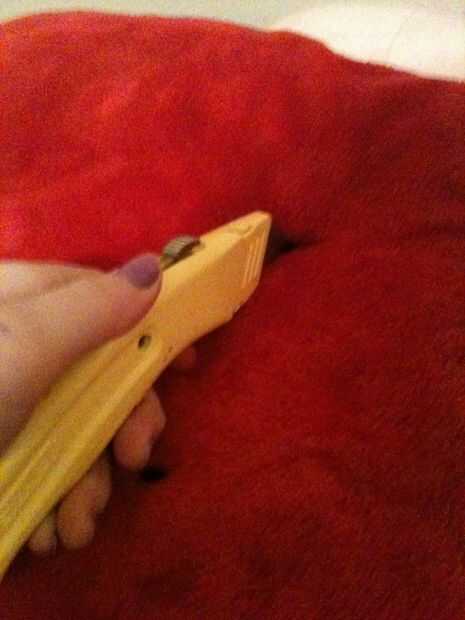 este proyecto utiliza vieja edredones, mantas, sábanas o fundas de almohada. Puede teñir y rasgones pequeños pueden ser fijo.Tomar un consolador y cortar en trozos de 4 a 6 dependiendo del tamaño (completo, Reina, rey).Luego coloque una pieza dentro