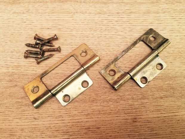 En el espíritu de reutilización, había podrido estas bisagras de un antiguo conjunto de puertas francesas, pero funcionan realmente las bisagras. Si yo iba a comprar las bisagras, conseguiría una bisagra de piano.