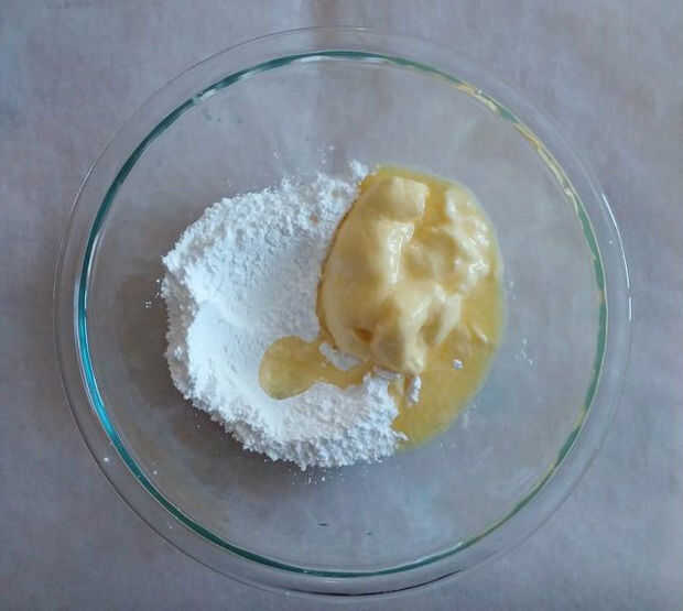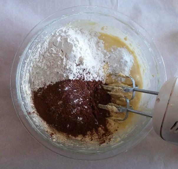 Ahora cambiar de puesto todos los ingredientes secos a la mezcla cremosa. Mezclar todo bien sin ninguna formación de terrón.