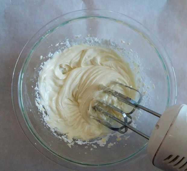En tazón grande, tomar azúcar y mantequilla. Batir con batidora de mano hasta que suave y esponjoso