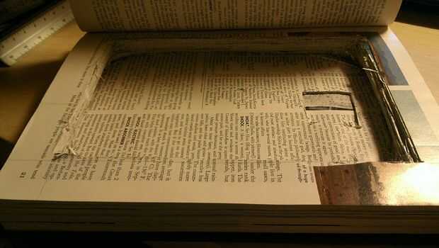 Comenzar a usar el cuchillo del exacto para cortar en la línea de hacer un rectángulo en su libro. Puede usar la regla como una plantilla para obtener una línea recta. Una vez que salga el primero 20 páginas puede detener con la regla. Seguir el corte hasta llegar a la profundidad que desee.