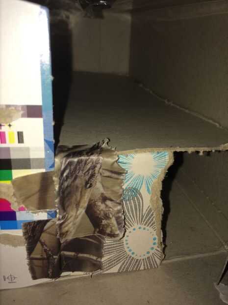 La pequeña aleta a la aleta del grabado en la parte inferior de la caja de la cinta. Poner los tejidos, y luego abrir el otro lado y hacer lo mismo.