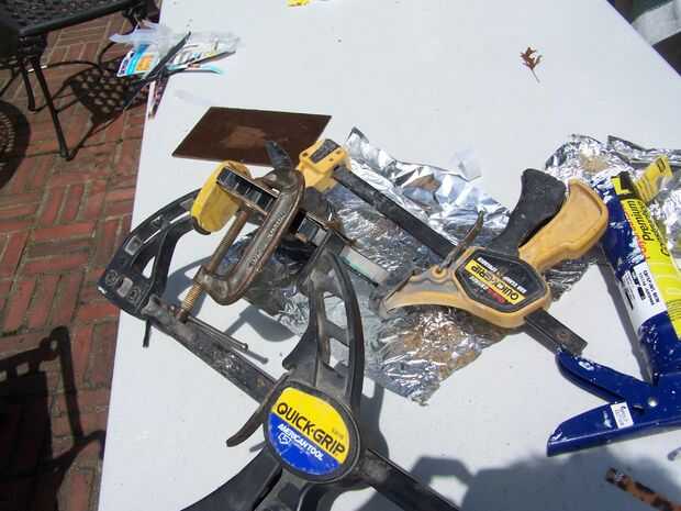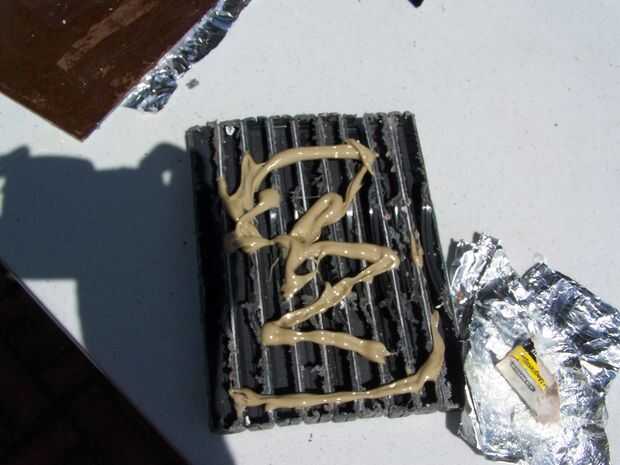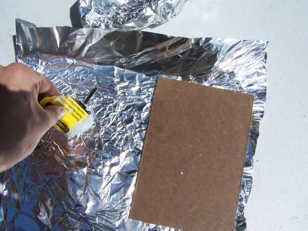Usando papel de aluminio como placa de la mezcla, mezclar el epoxi restantes. Con una nueva pieza de cartón frotis el epoxi sobre la no había laminado lado del MDF. Asegúrese de que está completamente cubierto, puede poner exceso de epoxy en los bordes.