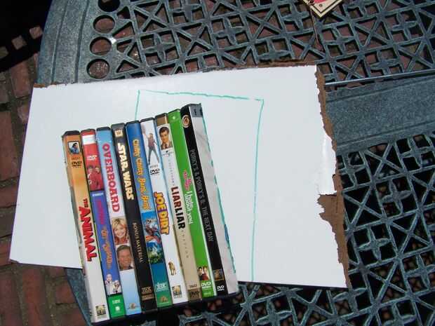 Coloque los casos sobre el MDF laminado y trazar su forma. Utilicé una sierra de ingletes para cortar la forma que quería, una maquinilla de afeitar debe trabajar demasiado. Ahora debe tener el respaldo y los casos. El respaldo debe encajar perfectamente en el la parte posterior del DVD.