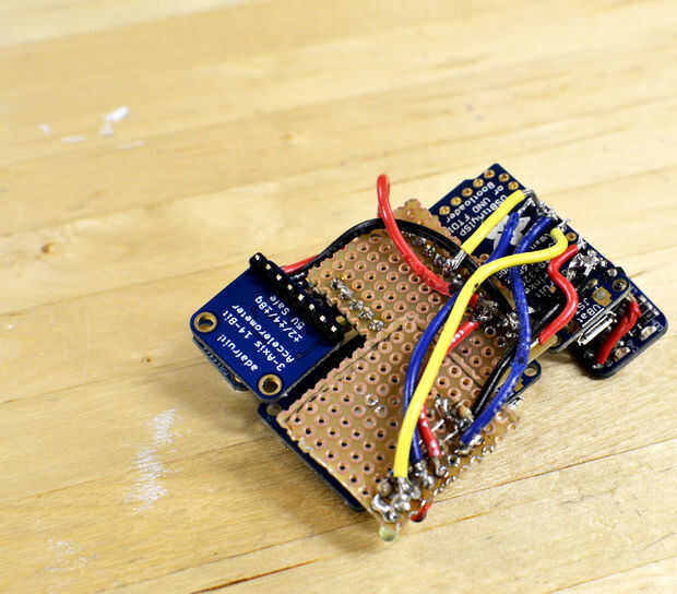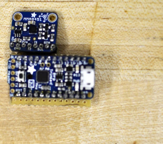 Para empezar a soldar con el 3V Pro, Oriente su acelerómetro de manera que se encuentra en la esquina superior izquierda de la 3V Pro, si el puerto USB es hacia la derecha, casi tocando el tablero. Tomar un trozo de alambre, el aislamiento y estañar con soldadura. Ello para pin A5 en la Junta de la soldadura. Trim/lata el otro extremo del cable a la longitud necesaria para alcanzar el acelerómetro [y a la longitud que usted está cómodo con]. Soldar al pin SCL en el acelerómetro. Lo mismo para conectar clavija A4 en el pin SDA. Conecte el pin 3V al pin de VIN en el acelerómetro. Conectar la clavija de la G a la tierra en el acelerómetro. Había soldado el cable 3V por encima de la Junta y el cable G debajo de la Junta, pero esto podría ser hasta preferencias personales [la imagen muestra que ambos soldados a continuación].
