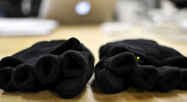 El circuito se coloca en el bolsillo de manopla para que el acelerómetro está en la esquina superior izquierda. Puede colocarlo en una bolsa antiestática antes de ponerlo en el guante.