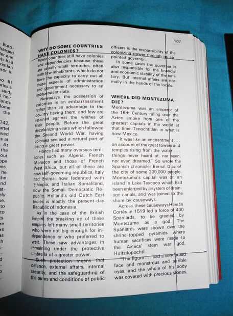 Las siguientes medidas dependen de la longitud y ancho de su libro. Seleccionar una página, páginas 30-40 lejos del comienzo del libro. Trazar 4 líneas, paralelas a los bordes de la página, unos cm del borde del libro.