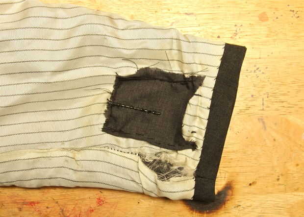 Toma hilo y aguja y coser en el dispensador de la tarjeta de visita. Usar puntadas pequeñas, como puntadas grandes harán las tarjetas conseguir al insertar. Tenga cuidado de no coser a la tela exterior de la chaqueta.