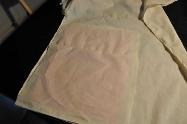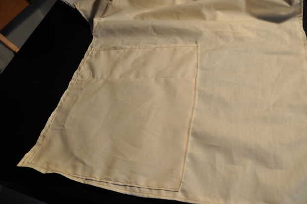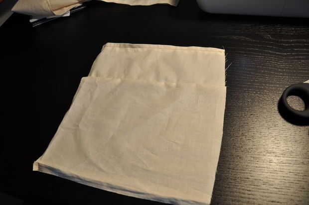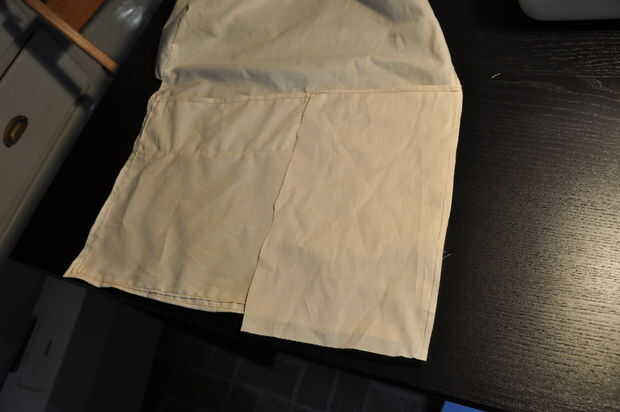 Cortar un rectángulo que es más grande que el iPad, o lo que quieras el bolsillo para. Usted tendrá que doblar los lados así que asegúrese de que es más grande que el objeto. (Se puede ver en la primera foto que no tenía una pieza lo suficientemente grande para solo cosí juntas las dos piezas que trabajó bien). Luego coser la costura para lo que va a ser la abertura de la cavidad.