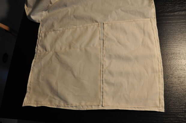 Ahora que sabes cómo hacer los bolsillos. Haz tantas como quieras. Hice dos: una para el iPad y otra para los mandos. Incluso si los mandos no encajan en el soporte plano, van a servir cuando el carrito está colgando sobre el lado de la cama.