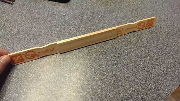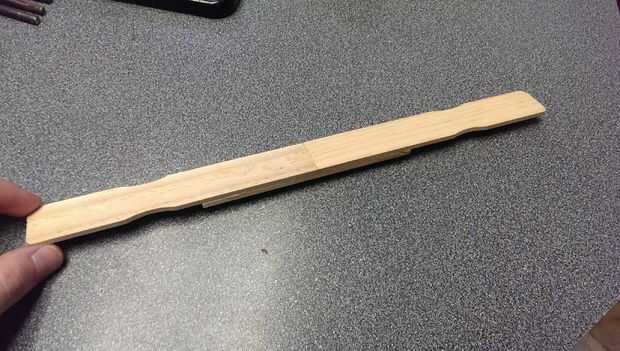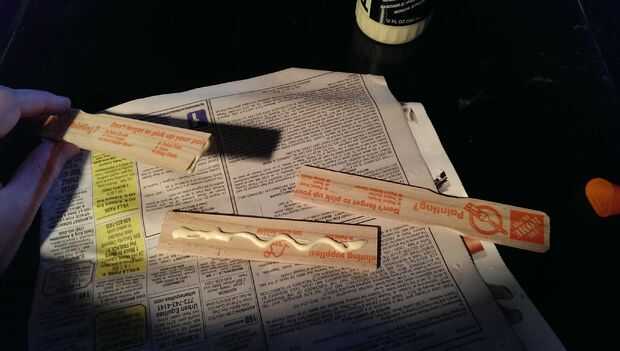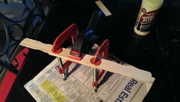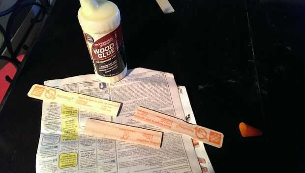 Tomar una de las piezas restantes de los agitadores de pintura y madera pegamento junto con las dos piezas medidas para hacer un tablero de una cubierta larga.