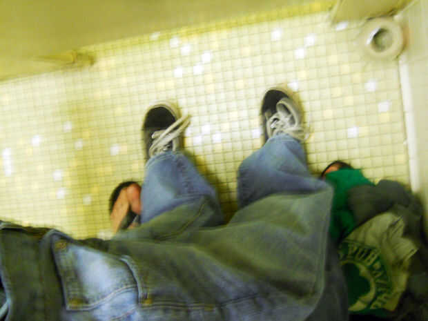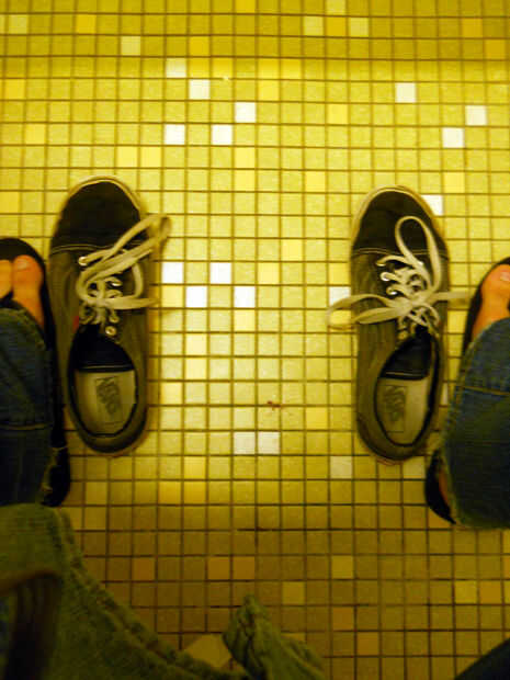 Entrar en el compartimento y coloque sus zapatos donde desea que sean. Luego coloque los puños de los pantalones alrededor de los tobillos de los zapatos.