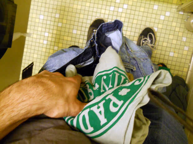 Inserte las camisetas en la parte inferior de los pantalones; 3 camisas por la pierna del pantalón. Por ahora se debería mirar más completas y no te preocupes por llenar el entero par de pantalones. Después de todo, sólo ves lo que está debajo de la puerta de todos modos.