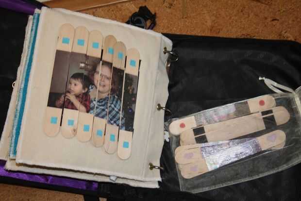 Cinta cinta junto con un par de trozos de cinta de pintor y 6 grandes madera palitos juntos. Hice 4 puzzles diferentes.