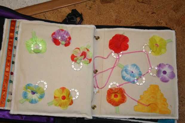 Hacer una colmena de la abeja con 2 piezas de tela amarilla haciendo un bolsillo y coser a la página. Había doblado a la tela con la plancha doble cara adhesivo.
