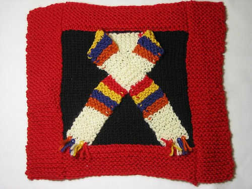 este fue mi primer afgano que había hecho. Lo hice con la intención como un regalo para un amigo y encantó el final. Fue mi primer intento de un afgano y el patrón de rizo. Utilicé hilo rojo corazón Super Saver (se trata de cómo me enamoré con hilo r