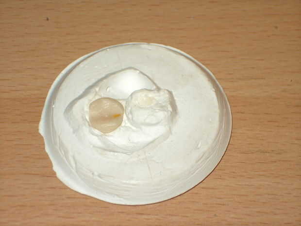 Finalmente usted puede llenar la cavidad con algún material de relleno de pegamento la corona