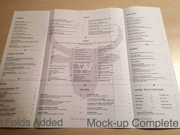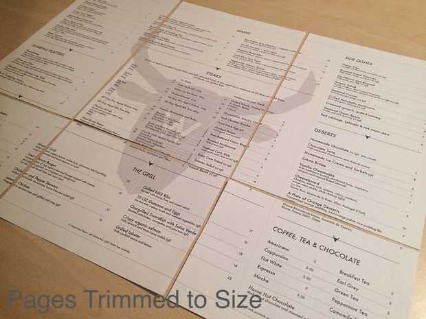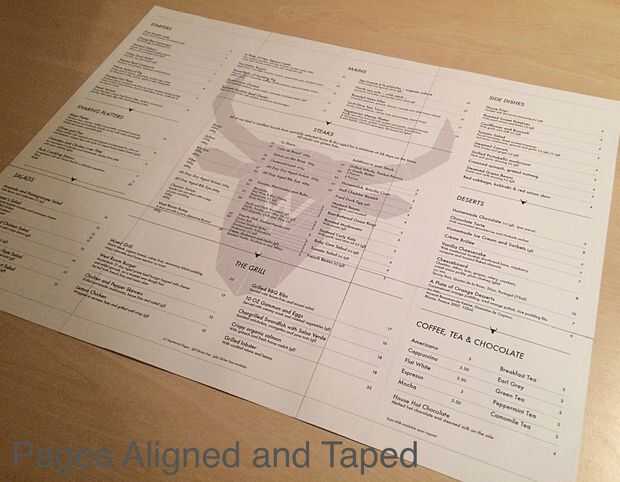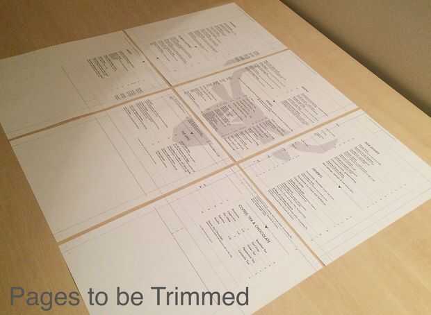 Esto mostrará tu maqueta menú exactamente a escala. Usted necesitará simplemente recortar las secciones utilizando las guías. Usar cinta adhesiva en la parte posterior del papel para pegar las secciones juntas.