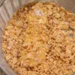 copos de maíz son el empanado principal en esta receta de pollo.* Existe una bolsa de plástico, pero no, no es necesariamente "shake-y-cueza al horno."Ingredientes:Pollo (yo usé senos sin huesos, sin piel)Cereal de maíz escamaUn huevoMielCebolla
