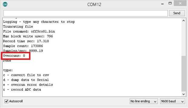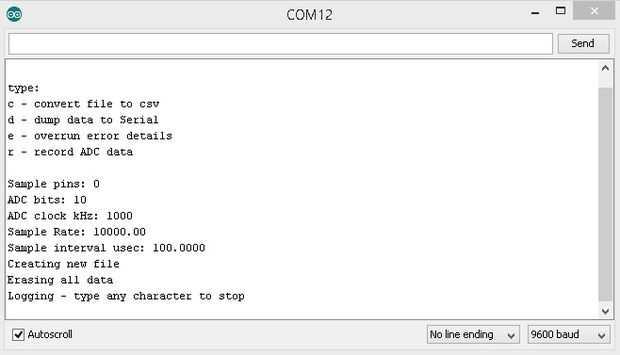 Para iniciar el registro Presione "r" en el teclado y presione Entrar. Arduino mostrará algo parecido a este (Ilustración2)