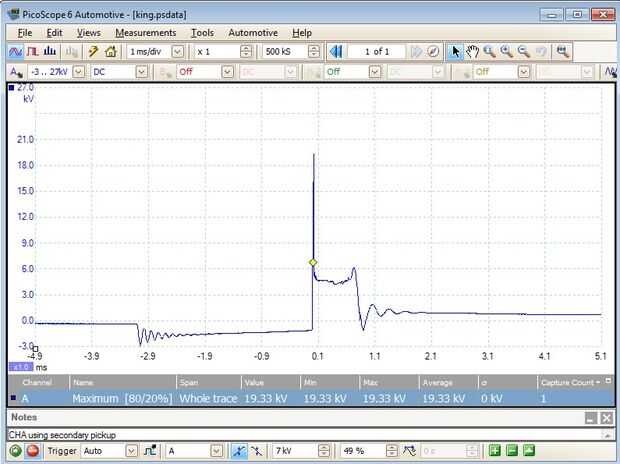 Yo he capturado forma de onda de ignición de la chispa de HT secundaria. Esa señal es rápida