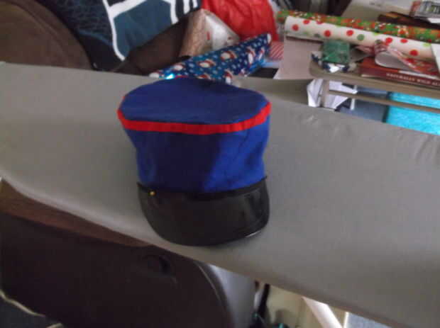 (por lo menos 3 pulgadas) tiras de tela que van a formar los lados del sombrero. A continuación, coser las tiras de tela derecho lados juntos dejando una abertura. Use la apertura para girar a su tela interior hacia fuera; luego cerró la puntada. Después de hacer esto vas a cortar una tira larga de tela roja para el ribete de la parte superior del sombrero y gire los bordes crudos hacia el centro y hierro abajo. Luego, tomar el borde que acaba de hacer y doblar sobre el borde superior de su sombrero y puntada hacia abajo. Ahora, la puntada la a los extremos del sombrero junto. A continuación, utilice los lados del sombrero para trazar un círculo en la tela azul oscuro. Usted tendrá que añadir un par de pulgadas en los lados de la parte superior del círculo haciendo el círculo que es trazado más grande. Luego, recorta el círculo y remeterla en los lados de usted sombrero Dónde está el ribete rojo. Fije a mano cose el círculo hasta el interior borde del sombrero. Ahora, corte cualquier exceso tejido dentro del sombrero. Para el ala del sombrero, necesitará tomar un traje de policía sombrero y tomar el borde de él. Por último, coser el borde del sombrero del traje en la parte delantera del sombrero que acaba de hacer.