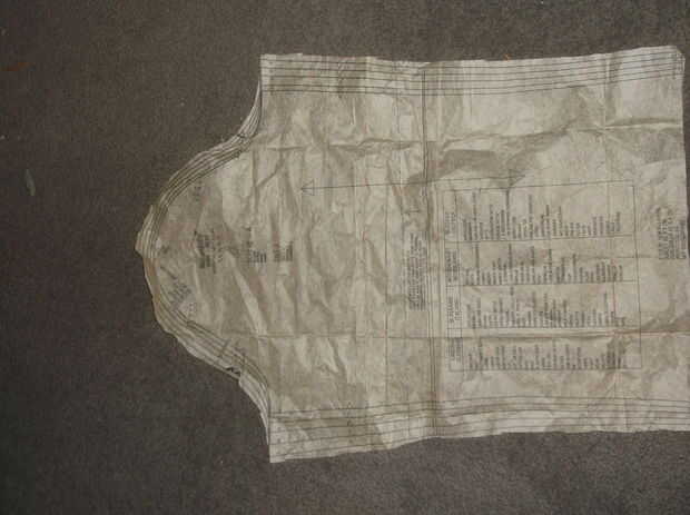si su uso de un patrón diferente que vas eligiendo diferentes piezas, así ignorar las indicaciones anteriores). A continuación, usted necesitará encontrar estas piezas con las indicaciones y recorto. Ahora, tome las piezas del patrón que simplemente corta y les pines a la tela azul oscurezca como se muestra en las direcciones de patrón y corta alrededor de ellos según su tamaño.