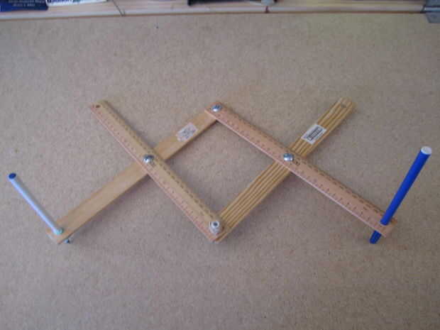 A lo largo de la parte inferior del dispositivo, la pluma de trazo es el de la izquierda, la articulación del media se utiliza para pegar el aparato a la mesa como punto de referencia (pivote).