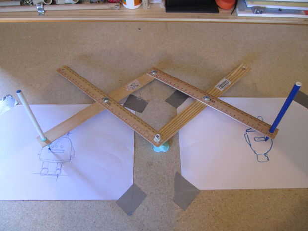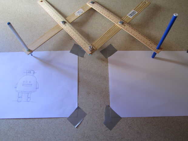 Tienen el pivote en el extremo izquierdo, el lápiz de trazado en el centro y la pluma de dibujo de la derecha aumenta la imagen.