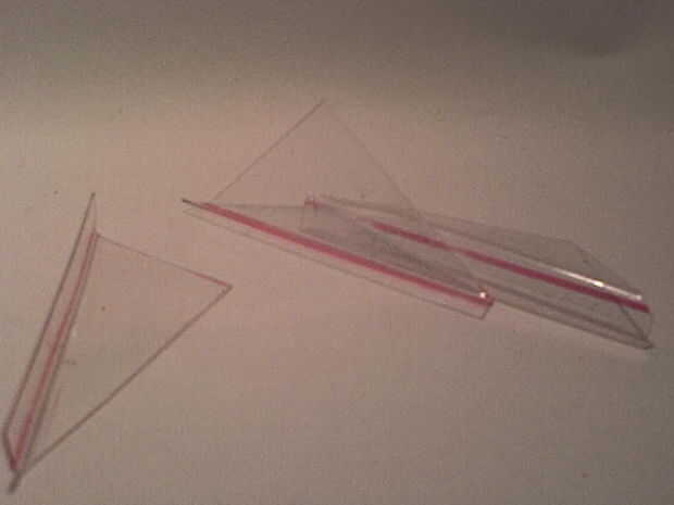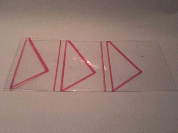 Tome su hoja de plástico y trazar su diseño. Incluir una ficha que se ejecutará desde la parte delantera de la aleta en la parte trasera.