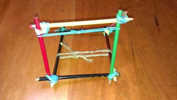 Atar la cinta de goma alrededor de las frente dos lápices.