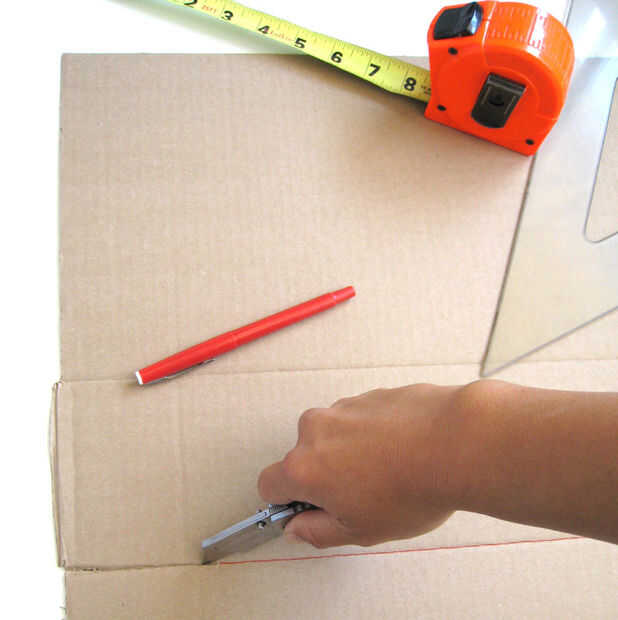 La precisión es importante al construir una estructura. Utilizar cinta métrica, regla y marcador fino para transferir las mediciones sobre la superficie de cartón.