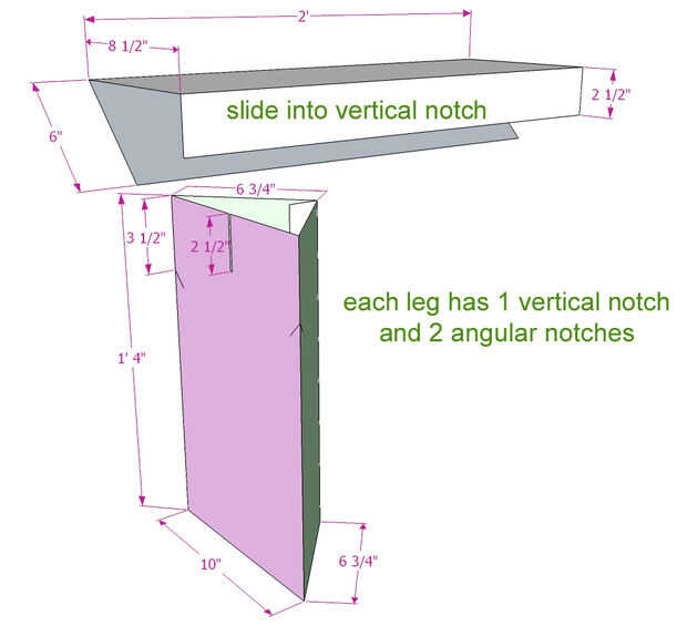 Una vez todas las 4 piezas, poner las piernas de la 2 tabla aproximadamente 18" aparte, deslice la pieza superior en las muescas y eso es todo!