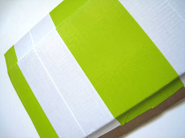 Para crear el diseño de rayas, asegúrese de que se superponen cada raya un poco. En trozos más grandes, ayuda a tener un amigo con un extremo de la cinta y estirarlo como usted la cinta sobre las juntas.
