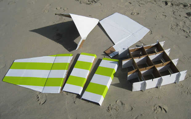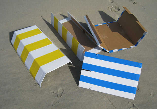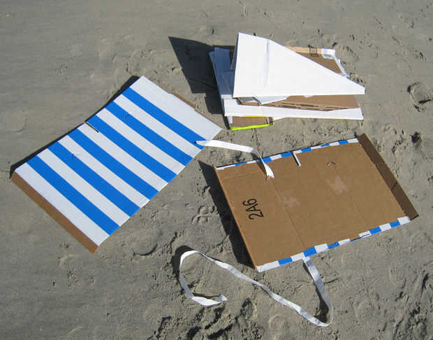 Proporciona protección contra la humedad de la arena de la playa y agrega mucha fuerza adicional a las piezas de cartón. Todas las piezas que toca el suelo pegado al menos 2".