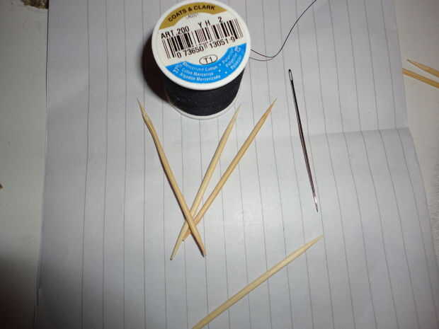 Como alternativa se podría sustituir casi todas las partes. Una longitud de aquellas del clip en lugar de un pin, cerillas, cinta... pero voy a mostrar mi técnica. Funciona bien, y los dardos tienen un llamamiento de ninja.