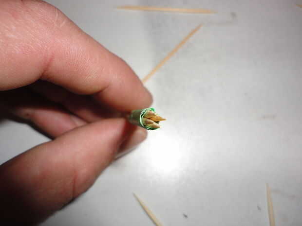 Atar el hilo alrededor del clúster en alrededor de 1/3 de la manera encima del palillo y luego Envuelva tan ajustadamente como sea posible para un montón de vueltas. (30 o más). Una vez que esté satisfecho que es seguro, ate un nudo sin permitir que el subproceso se afloje.