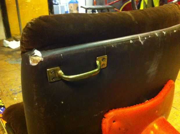 Cuando taladre el respaldo tenga cuidado de no ir demasiado cerca del borde para evitar que se resquebraje, y tornillos que no son tan de largo que asoman en su espalda cuando usted se inclina en la parte posterior del amortiguador.