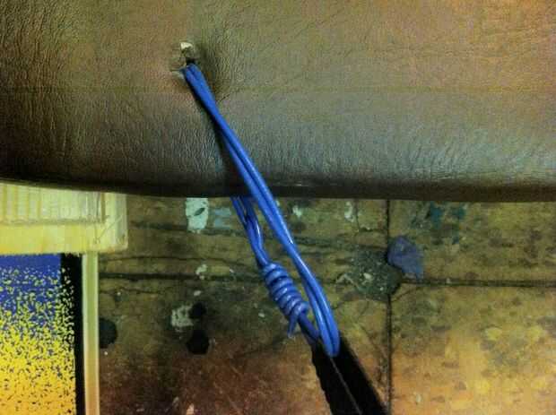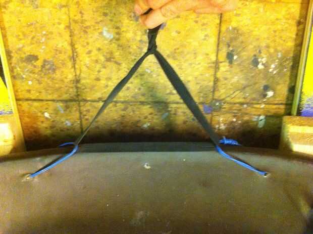 Perfore unos agujeros en la parte delantera del asiento con un diámetro de 1/2 a 1 pulgada broca y ponen alguna cuerda o alambre a través de ellos para hacer bucles de accesorio para su cuerda.