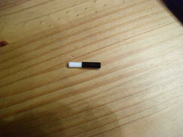 Cortar un trozo de tubo de la tinta 3/4" de largo de un bolígrafo y el abrigo de una mitad con un pequeño trozo de cinta aislante.