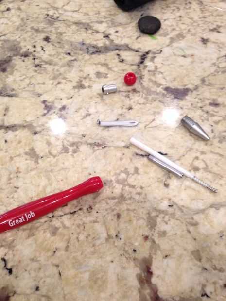Primero que desea desarmar el bolígrafo por lo que sólo tiene el cuerpo. Usted quiere asegurarse de que el centro del cuerpo tiene un gran agujero.