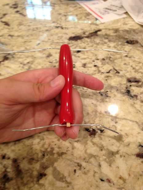 a continuación desea que pase la banda elástica a través del cuerpo. Esto puede conseguir complicado!!!!!! Una vez que la banda a través de, tienes que poner 1 gigante clip de papel desplegado a través de 1 lado. En el otro 1 pequeño desplegado clip de papel.