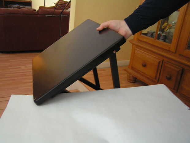 usé un bloc de dibujo para visualizar el producto final.  Sostenga un objeto plano contra la mesa bandeja para averiguar cuánto tiempo dejar las piernas.