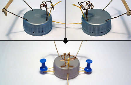 Para dar la capacidad de fijar abajo haces 4 agujeros. Dos en un lado de la parte superior de la botella y dos en el otro. A continuación alguna cadena por los agujeros del hilo de rosca y un nudo.