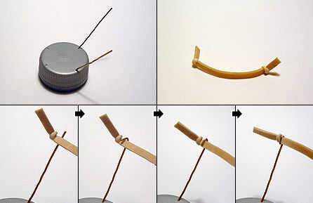 Ahora resto la banda de caucho entre las puntas de los dos brazos, luego doblar las puntas de los brazos alrededor de la goma y sujetarlos hacia abajo. Asegurándose de que no hay espacio para los nudos para deslizarse sin embargo.