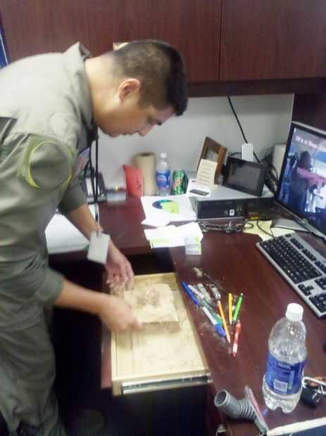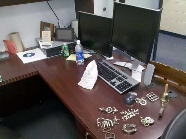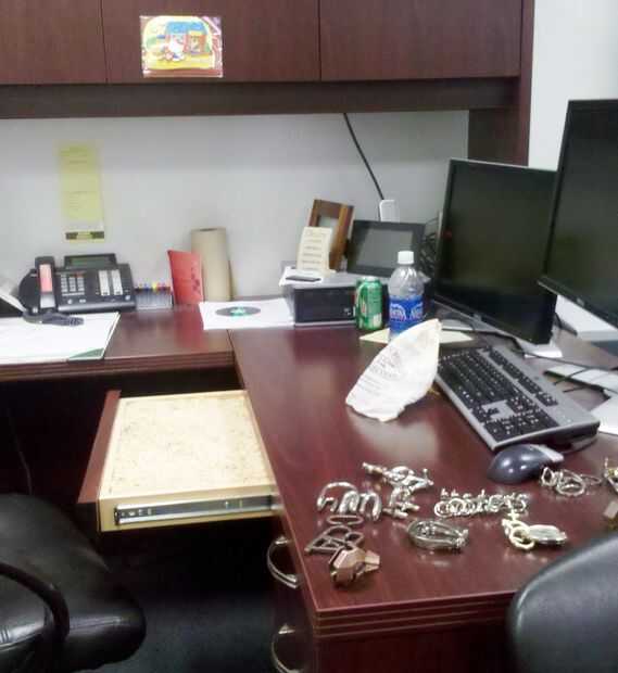 Si eres capaz, vigilar su marca entrar en su oficina. No darle suficiente tiempo para descubrir por sí mismo; caminar con un cuaderno y pedirle un lápiz o algo que sabes que él tiene en el cajón.