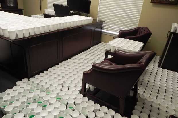 -Operación alfombra fresca: Utiliza unos mil tazas de agua y el personal de swing shift, llenan una oficina completas tazas de agua.