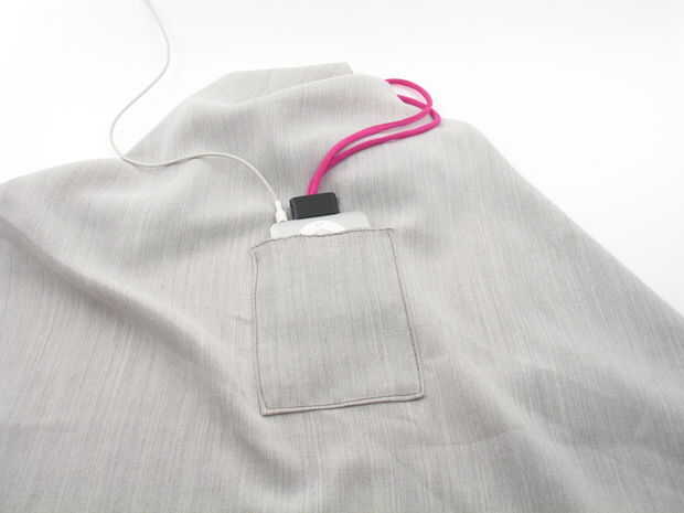 Utilice otro pedazo de tela regular para crear un bolsillo esbelto para el iPod. A coser esto en el forro del vestido por lo que fácilmente puede resbalar en sobre la marcha.También podría considerar hacer una aleta abotonada para mantenerlo seguro.